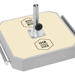 - Möglichkeit des Brandings auf dem haltbaren Laminat (Aufkleber) des Schirmständers,