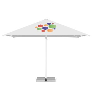 - Ogródki restauracyjne i kawiarniane – Parasole z logo są doskonałym wyborem dla branży gastronomicznej. Tworzą one przyjemne, zacienione miejsce dla klientów, jednocześnie reklamując Twoją firmę.