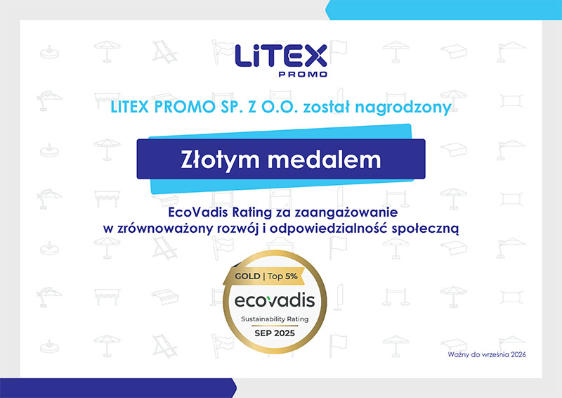 Z ogromną satysfakcją informujemy, że Litex Promo sp. z o.o. zdobyło Złote odznaczenie EcoVadis.