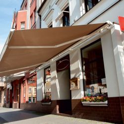 Markiza posiada aluminiową półkasetę, która chroni tkaninę przed szkodliwym działaniem warunków atmosferycznych,