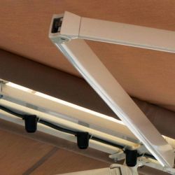 Opcje:Oświetlenie LED w ramionach, Pilot do sterowania, Podpory teleskopowe usztywniające konstrukcje markizy – nie można ich stosować wraz ze stacją pogodową, Silnik elektryczny, Stacja pogodowa
