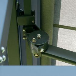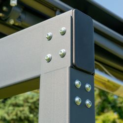 Wszystkie elementy konstrukcji nośnej zostały ocynkowane przez co znacząco zwiększona została odporność na korodowanie elementów stalowych, a na szczycie markizy zastosowano daszek malowany proszkowo.