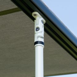 Opcje:Oświetlenie LED w ramionach, Pilot do sterowania, Podpory teleskopowe usztywniające konstrukcje markizy – nie można ich stosować wraz ze stacją pogodową, Podświetlany logotyp na owiewce, Silnik elektryczny, Stacja pogodowa