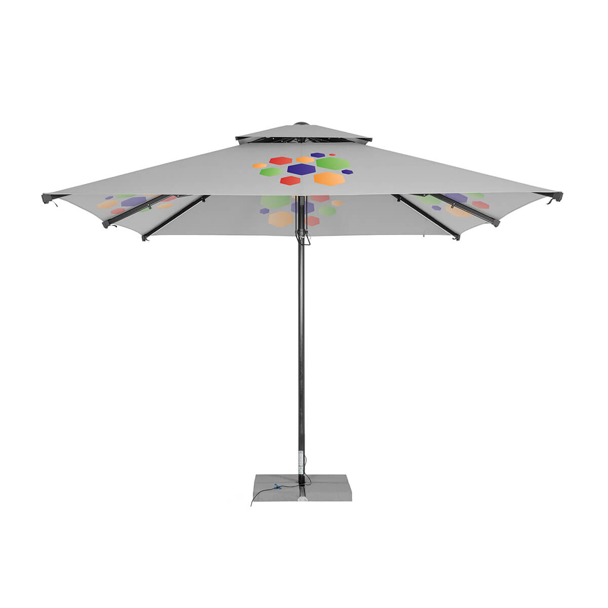 Standardowo poszycie parasola wykonane jest z wytrzymałej tkaniny poliestrowej, która jest odporna na rozdarcia, uszkodzenia mechaniczne oraz skutecznie chroni przed promieniowaniem UV.Czasza może pełnić również funkcję reklamową — nadruk umieszczony na panelach lub owiewce pozwala w prosty sposób wzmocnić rozpoznawalność lokalu. Spersonalizowany parasol Easy Up Plus staje się wtedy efektywnym narzędziem marketingowym, które buduje świadomość marki.