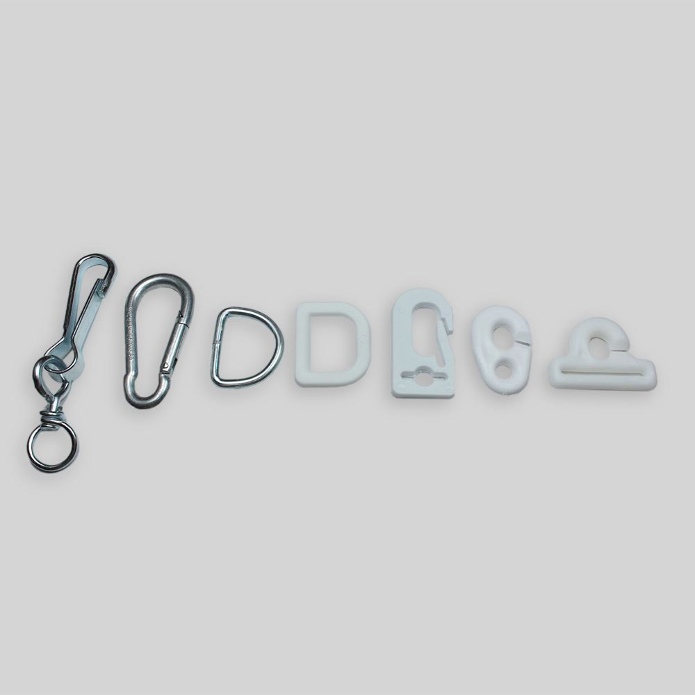 Popularne wykończenia – Flaga pozioma:Karabinki, Linka, pętla, Oczka, Tunel na drzewiec