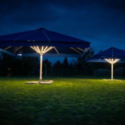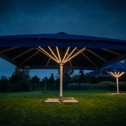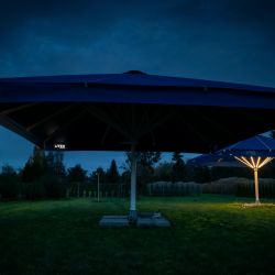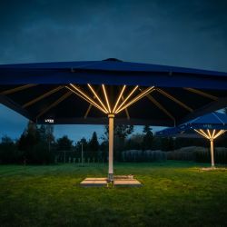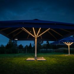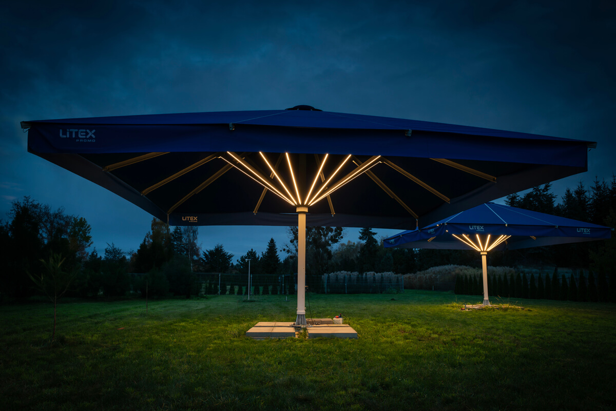 Komfort po zmroku – duży parasol gastronomiczny z oświetleniem LED
