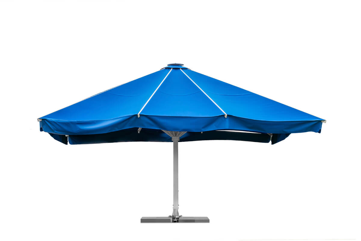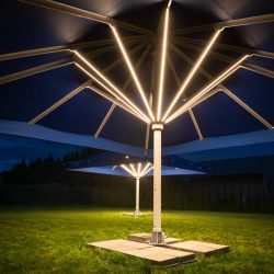 Giant Plus to sprawdzony sposób na stworzenie przytulnej, nastrojowej atmosfery, która przyciąga uwagę i zachęca gości do dłuższego pobytu. Ten duży parasol gastronomiczny może zostać wyposażony w zintegrowane oświetlenie LED, zapewniające komfort w późnych godzinach wieczornych.