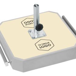 - Możliwość brandingu na trwałym laminacie (naklejce) podstawy parasola,