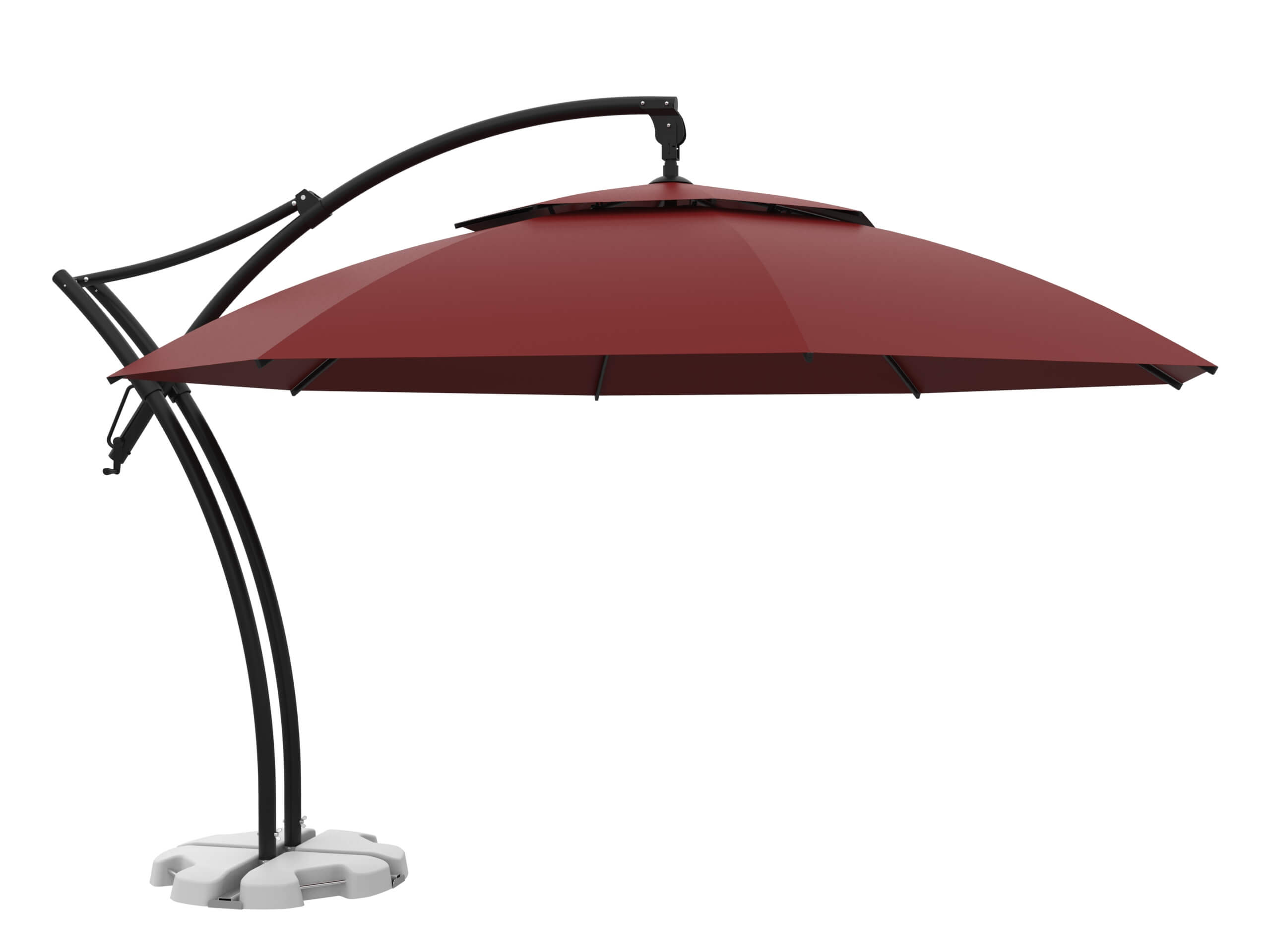 Największy atut dla parasola Ibiza Plus stanowi podwójna boczna noga, która maksymalizuje wykorzystanie dostępnej przestrzeni. W ten sposób lokal zyskuje dodatkowe miejsca siedzące bez poświęcania komfortu gości. Dodatkowo parasol z boczną nogą dzięki atrakcyjnej i nowoczesnej bryle dodaje prestiżu każdej przestrzeni, stanowiąc elegancką i stylową wizytówkę lokalu.