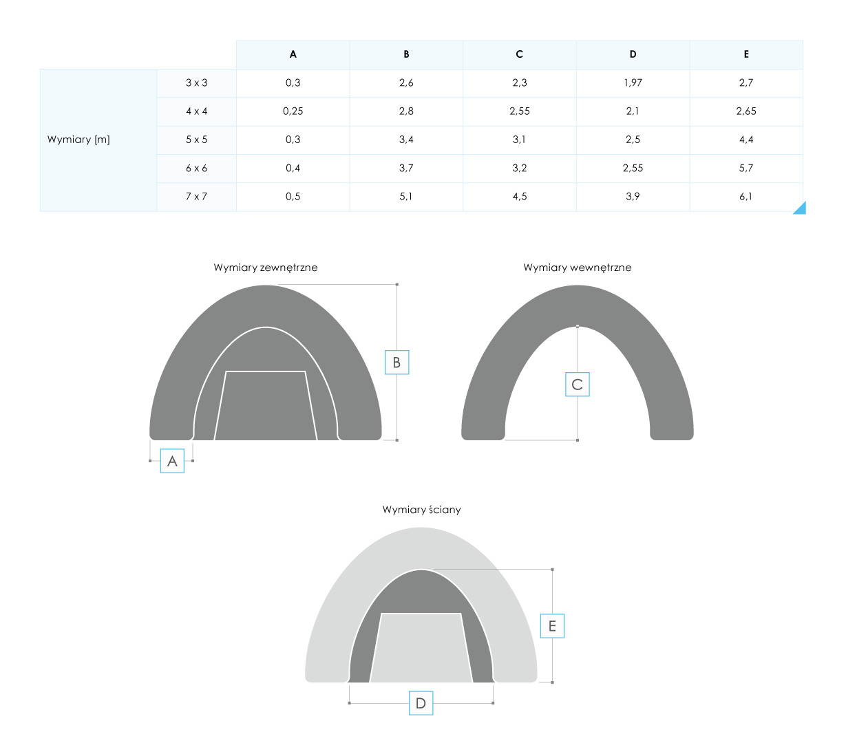 Wysokość zewnętrzna:2,6 m, 2,8 m, 3,4 m, 3,7 m, 5,1 m