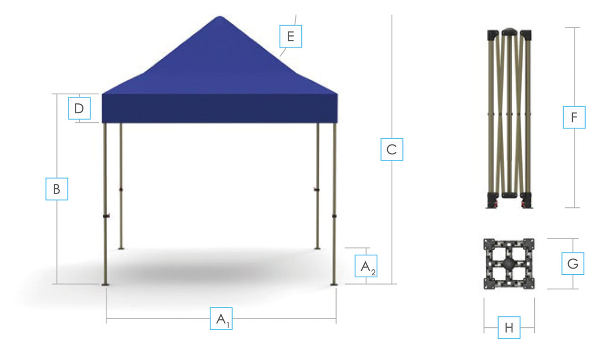 Dostępny w rozmiarach od 3×3 m do 4×8 m, namiot handlowy ekspresowy w wersji Plus oferuje szeroki wachlarz konfiguracji – znacznie szerszy niż wersja Standard.