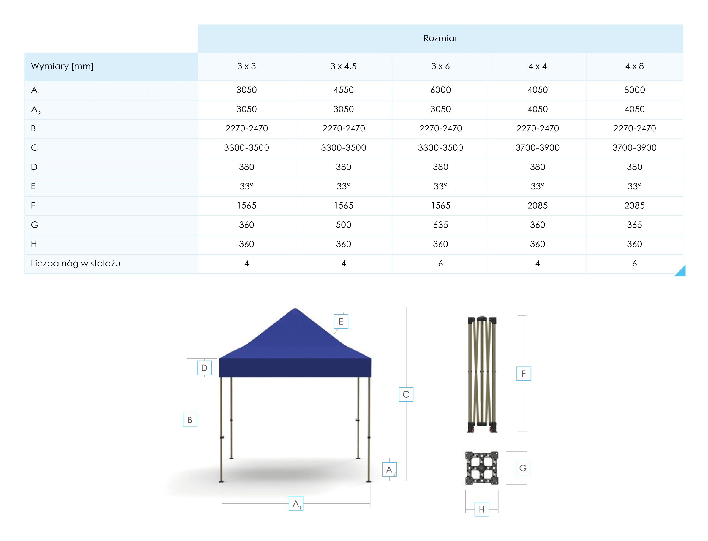 Rozmiar:3 x 3 m, 4 x 4 m, 3 x 4,5 m, 3 x 6 m, 4 x 8 m