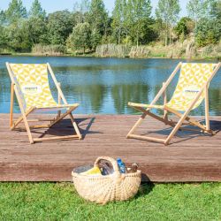 Drewniany leżak oferuje możliwość wyboru pomiędzy jednostronnym lub dwustronnym poszyciem. Dzięki temu możesz dostosować przekaz reklamowy leżaka do swoich potrzeb.